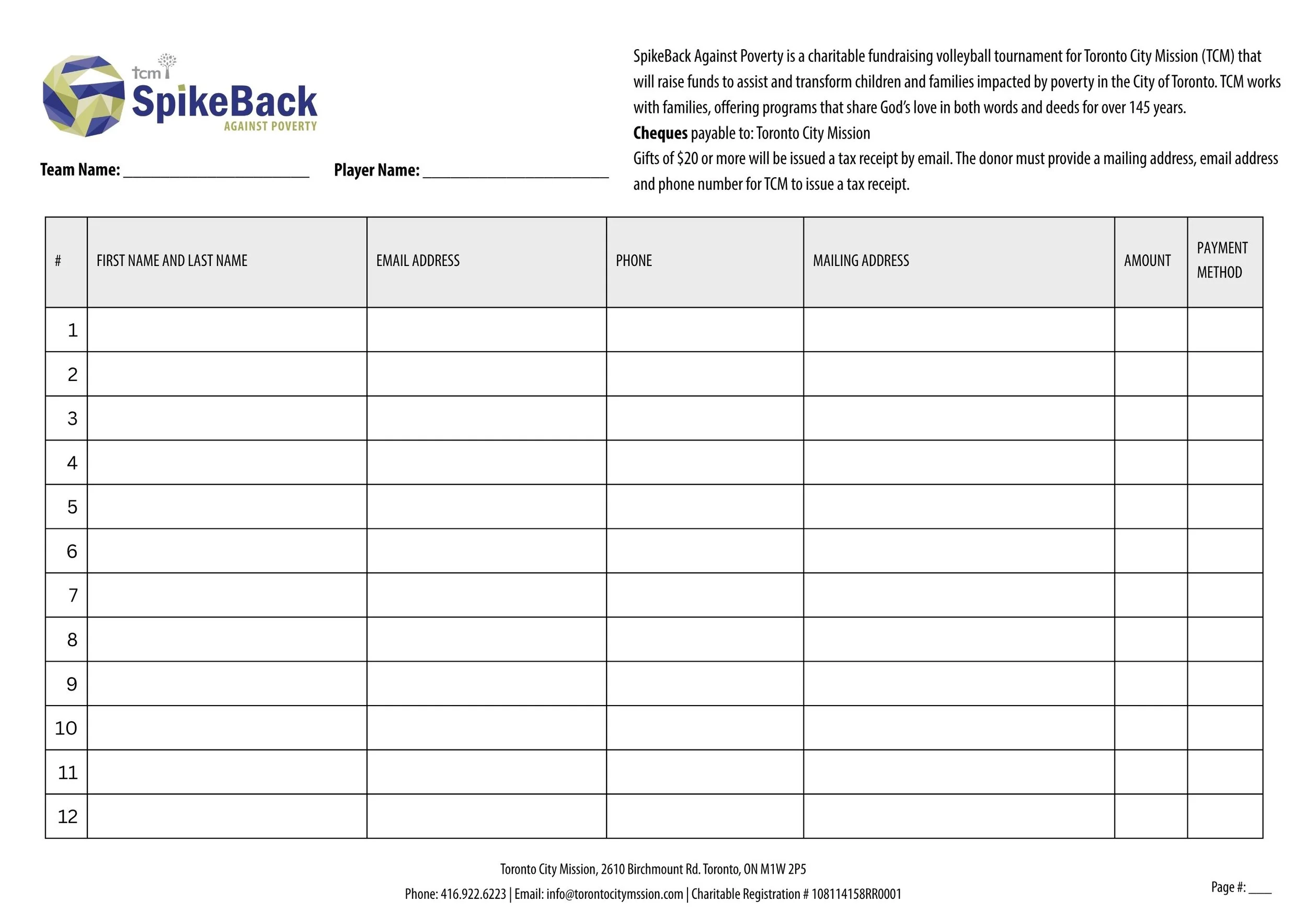 On Saturday, March 28, 2026, I will be participating in a volleyball tournament called SpikeBack Against Poverty. My goal is to raise $250* [Note: You can set your own fundraising goal], which will help send two kids impacted by poverty to Toronto City Mission’s (TCM) Sonshine Summer Day Camp.