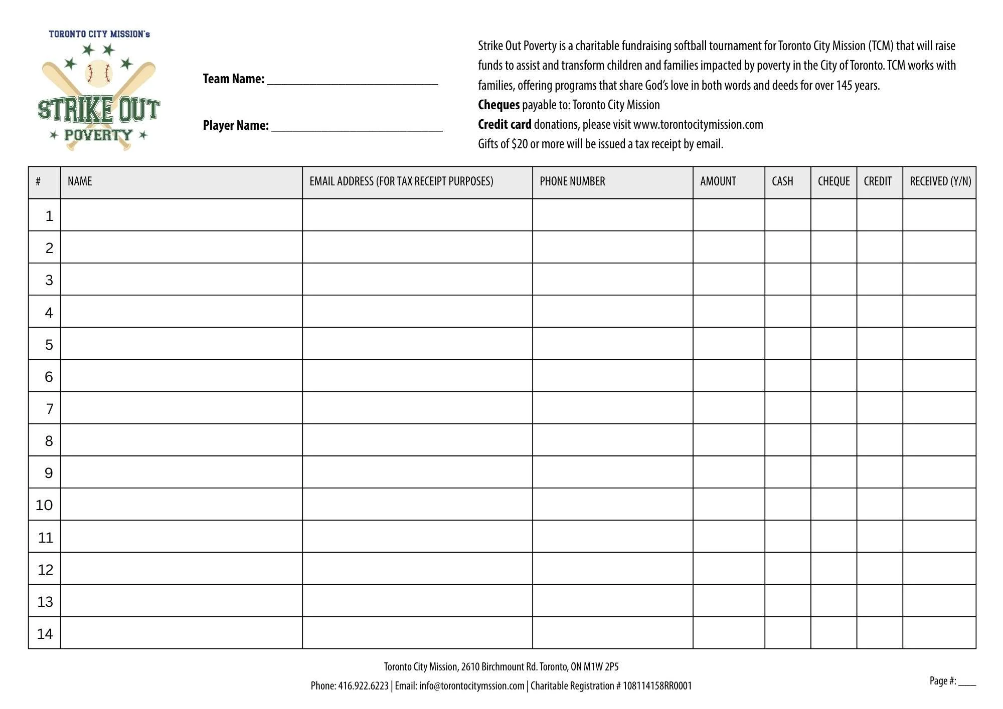 All donations $20 or more will be issued a receipt by email. Ensure your supporters include their name and email address on the pledge forms.